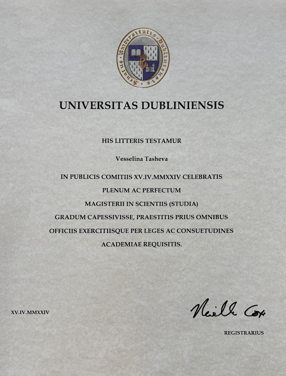 2-year diploma from Trinity College Dublin